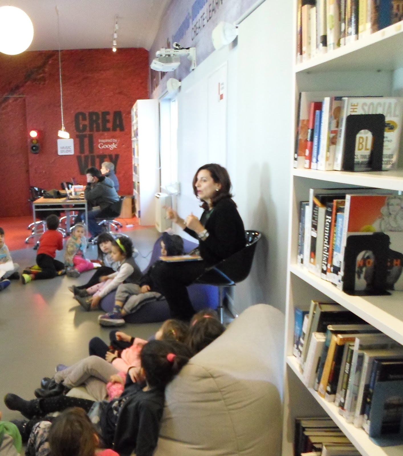 Η υπεύθυνη της Βιβλιοθήκης μας διάβασε δύο παραμύθια και μας εξήγησε τον τρόπο λειτουργίας της βιβλιοθήκης.